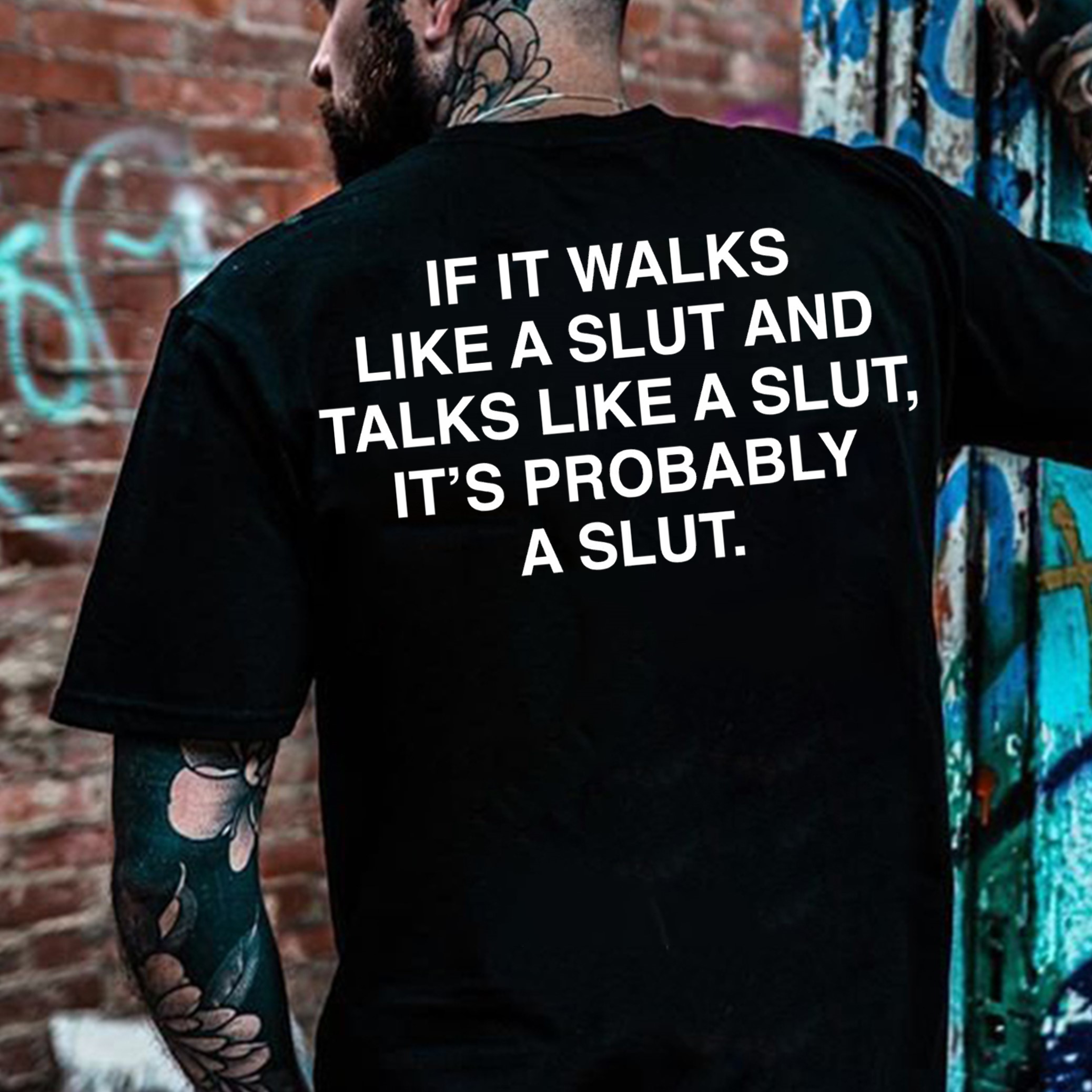 IF IT WALKS LIKE A SLUT AND TALKS LIKE A SLUT IT'S PROBABLY A SLUT Print Men's T-shirt
