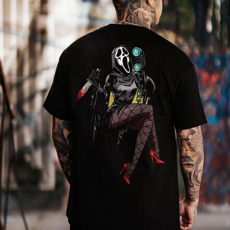 MARY JANE AND MURDER Smoking Devil Lady Print Men's T-shirt