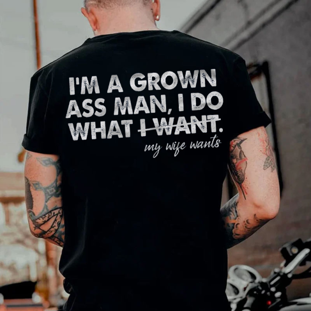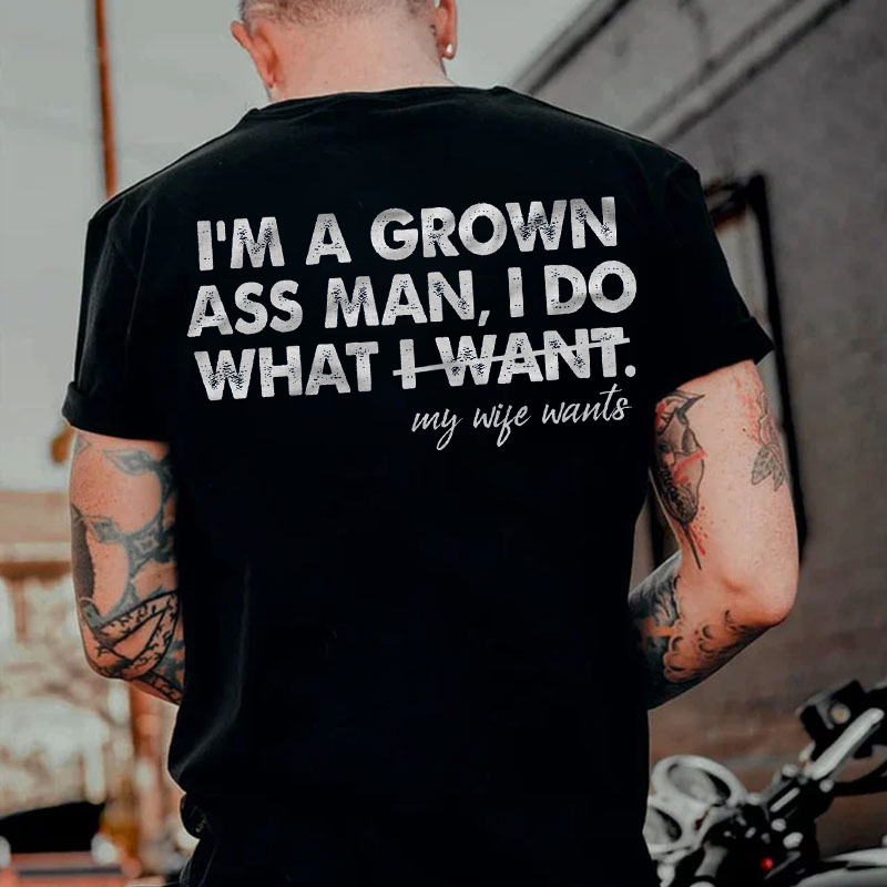 I'M A GROWN ASS MAN I DO WHAT I WANT my wife wants Print Men's T-shirt |