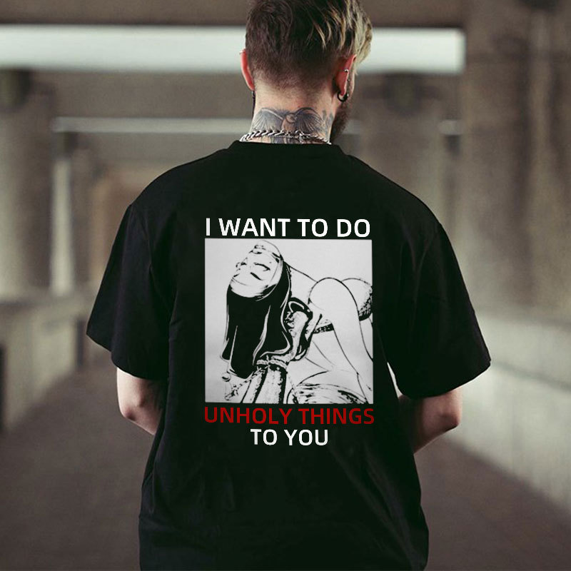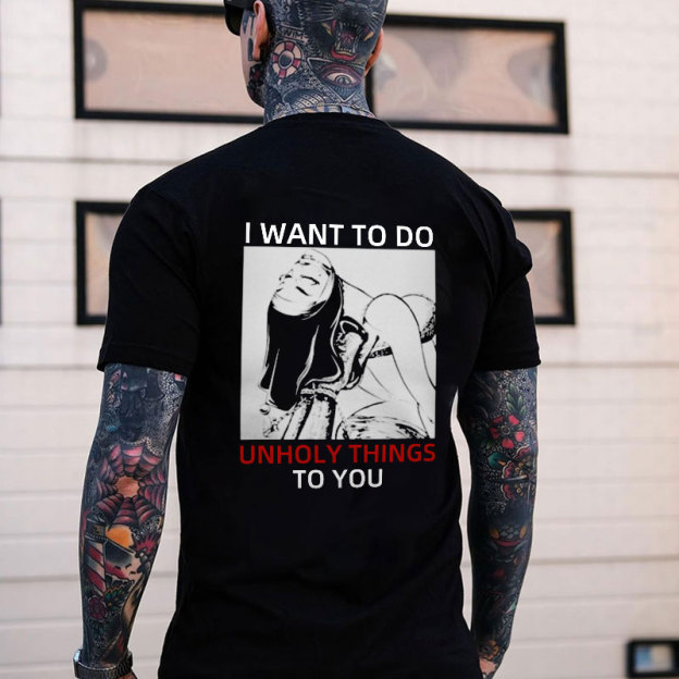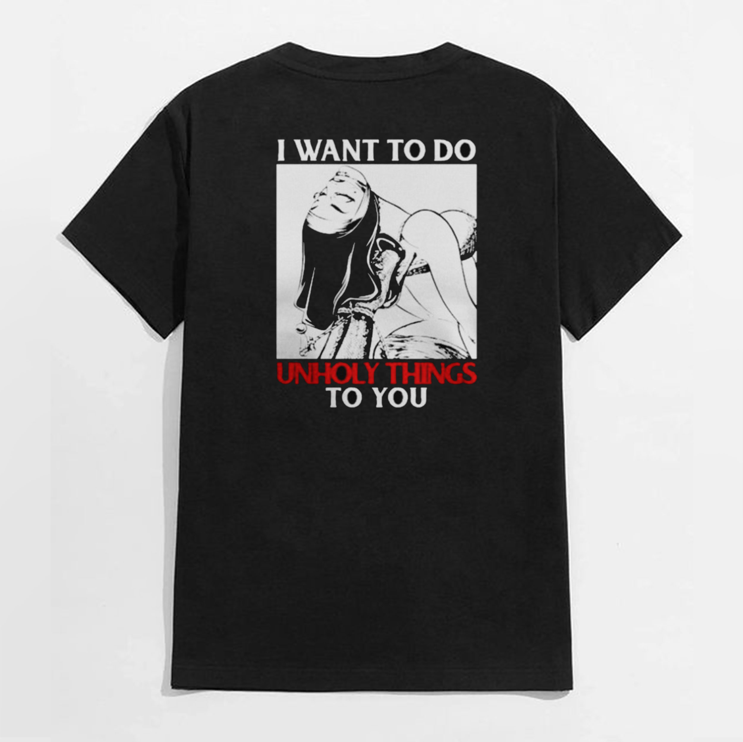 I WANT TO DO UNHOLY THINGS TO YOU Black Print T-shirt