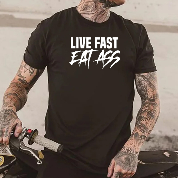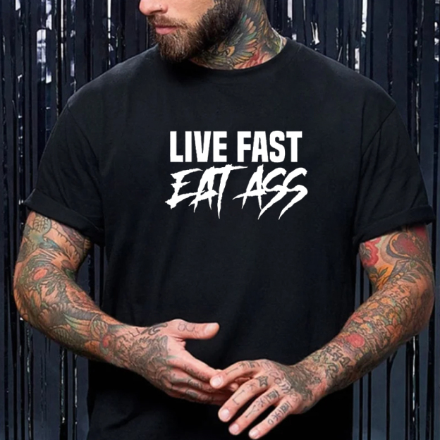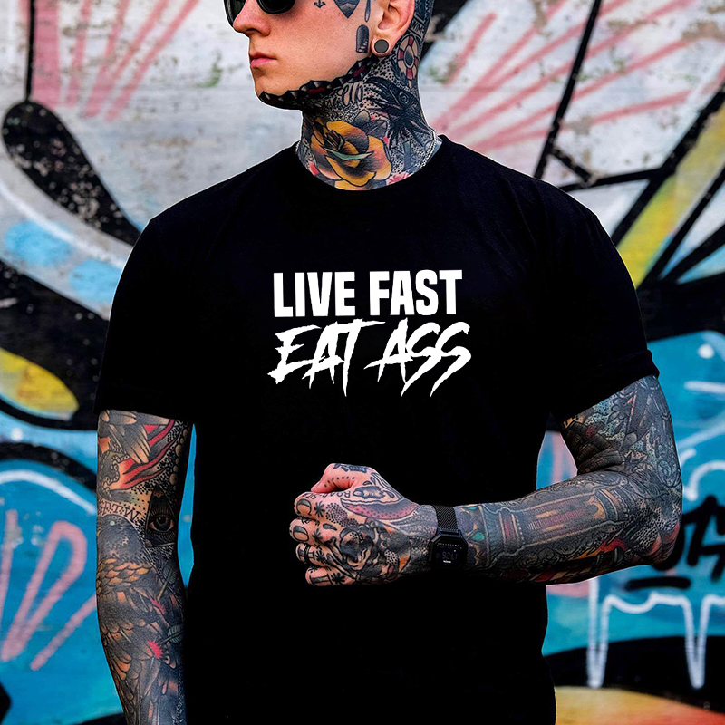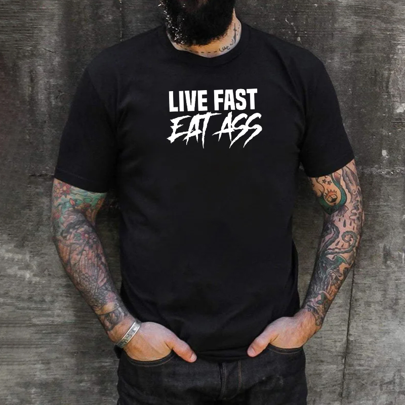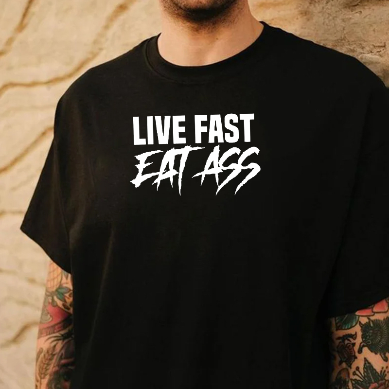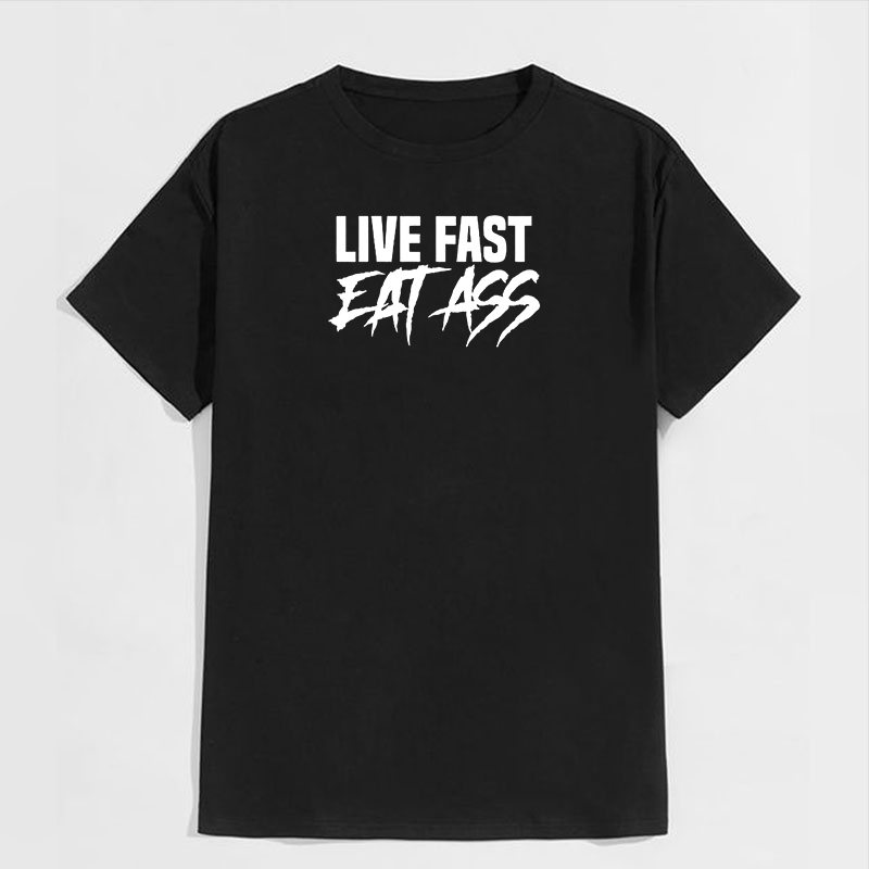 LIVE FAST EAT ASS Sexy Letter Graphic Black Print T-shirt