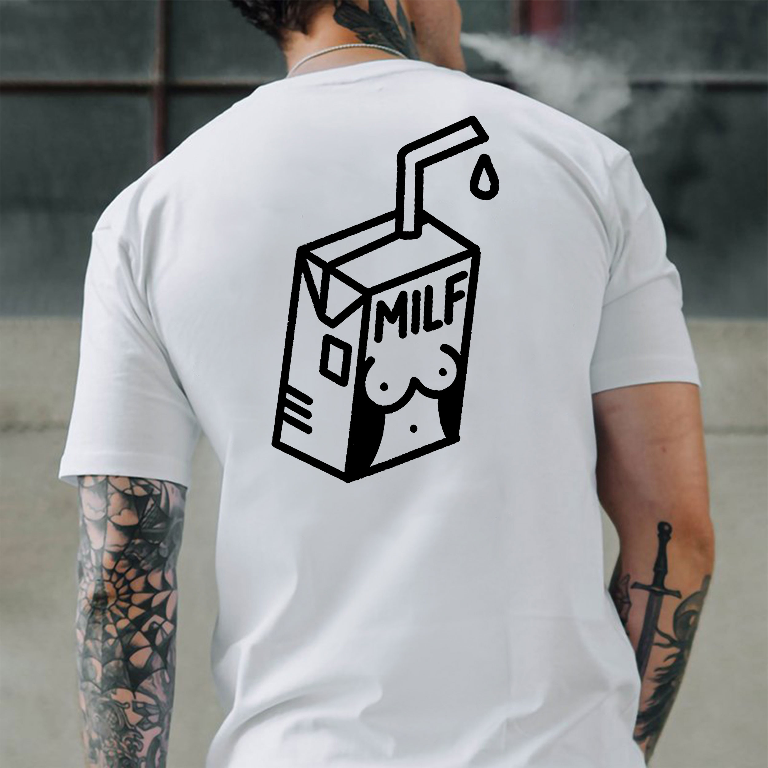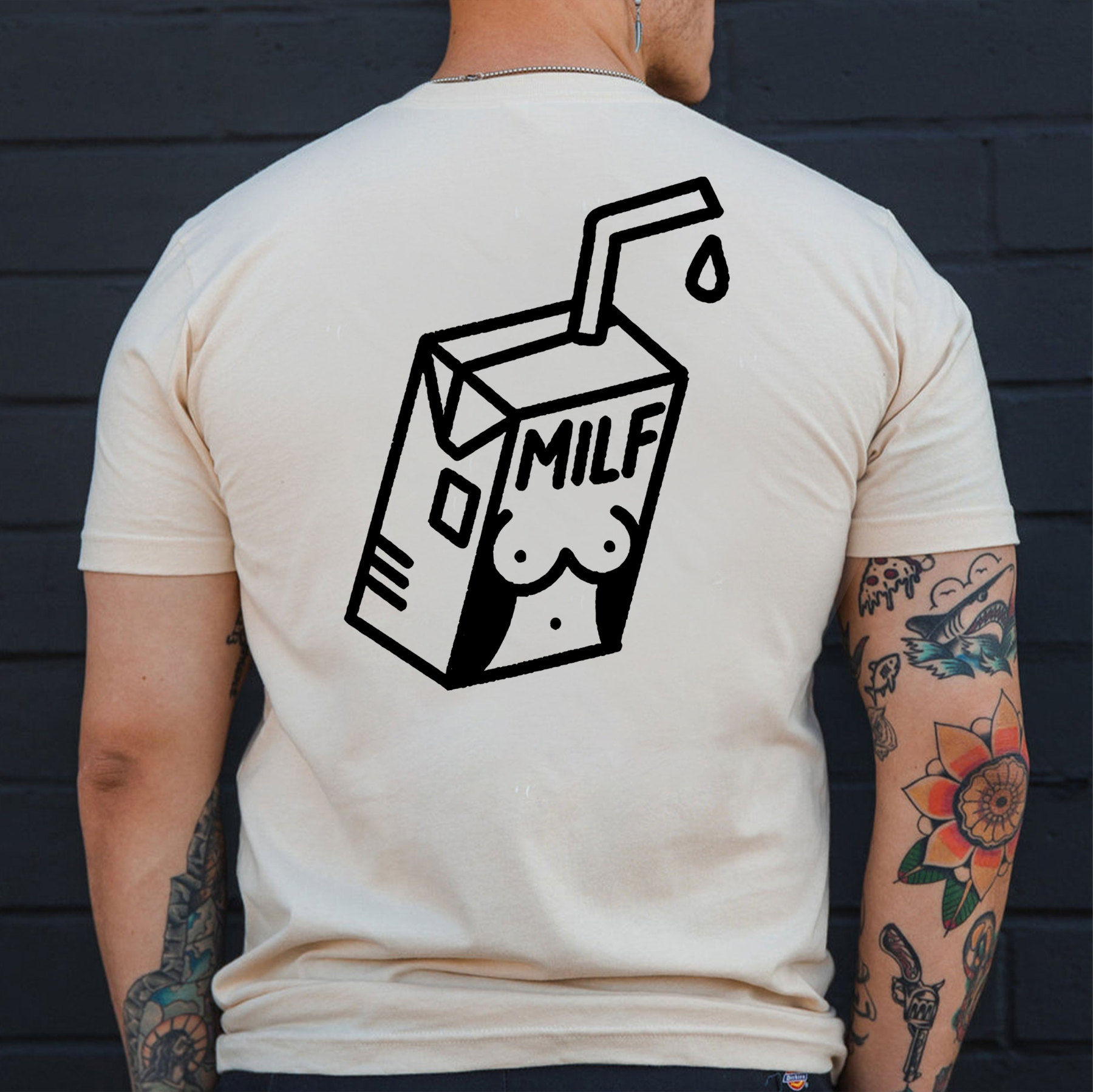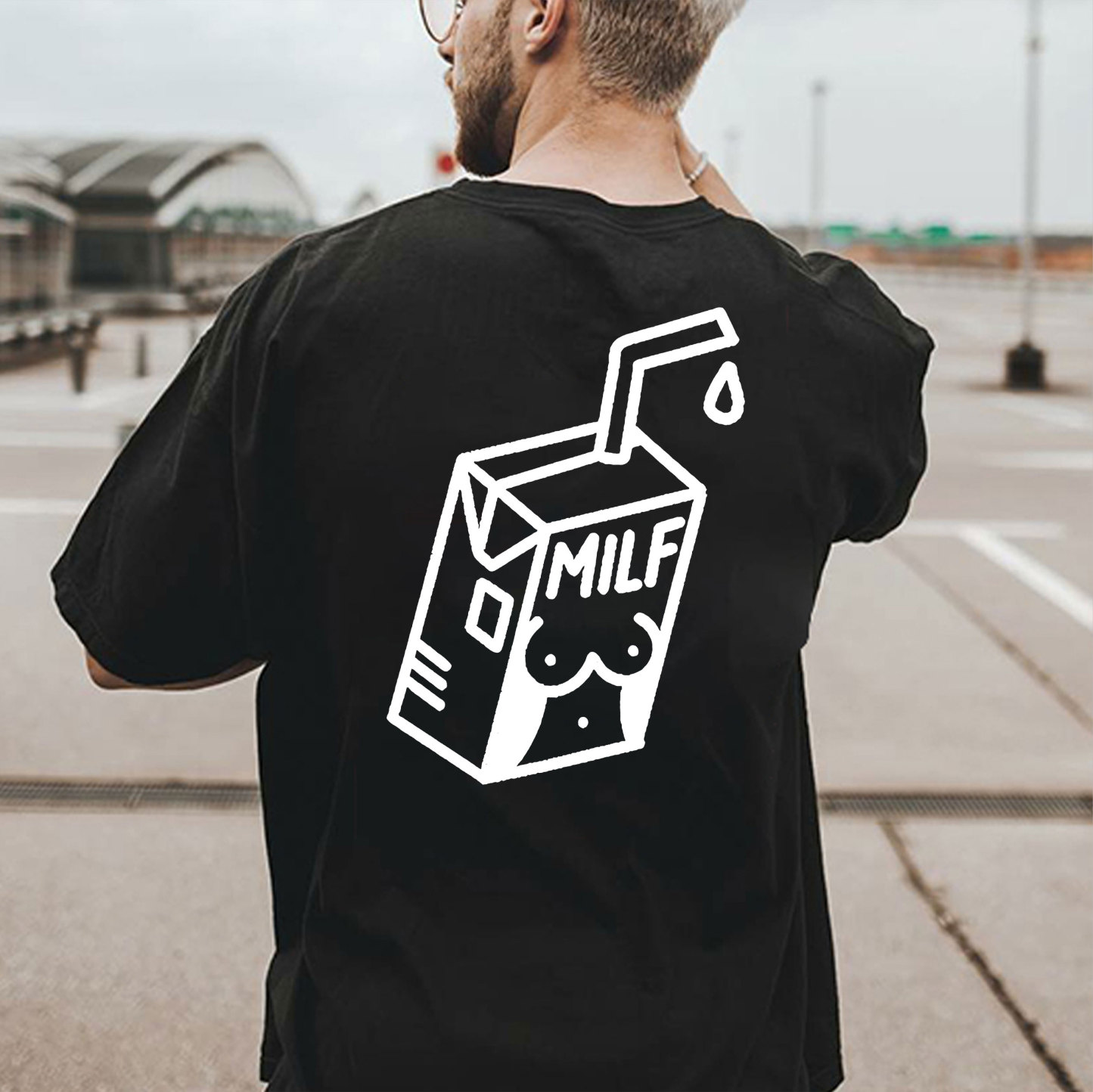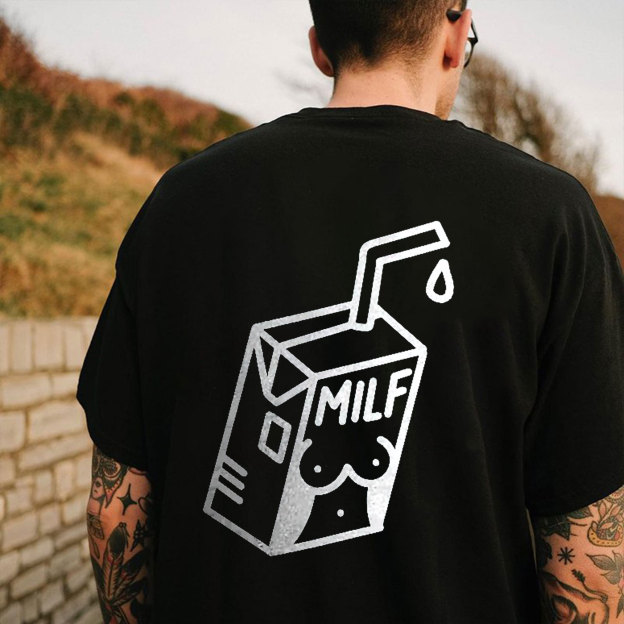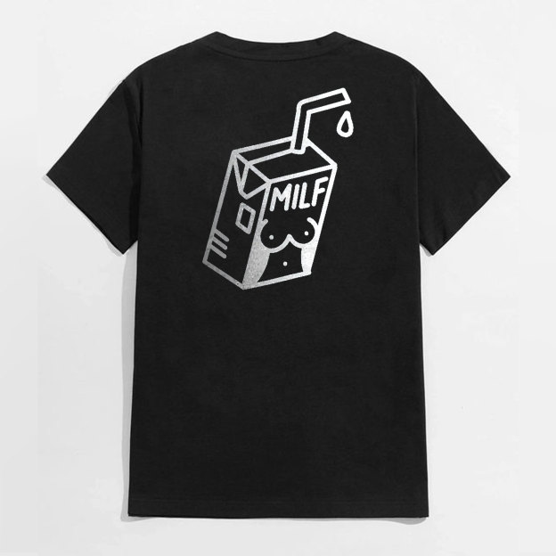 MILF Sexy Lady Outline on the Milk Box Graphic Black Print T-shirt
