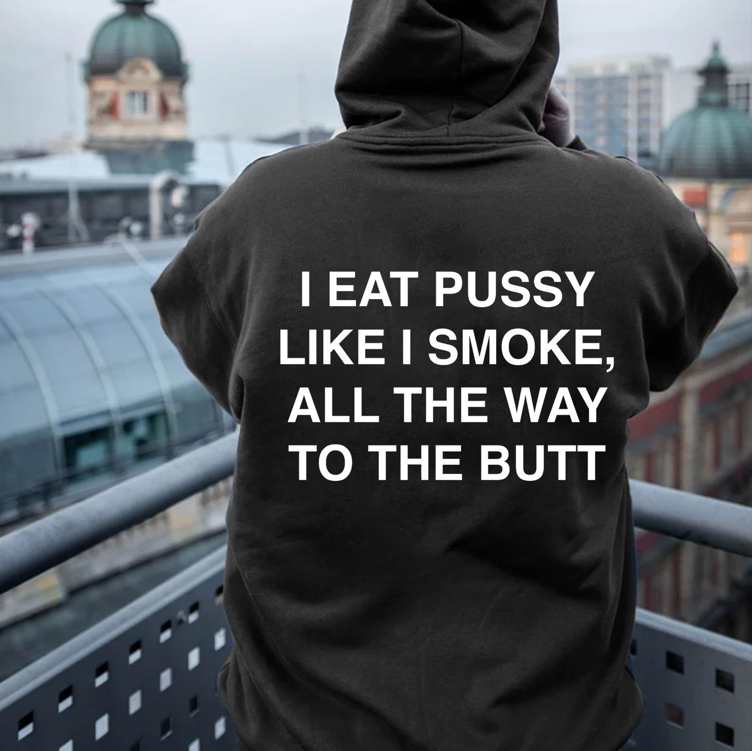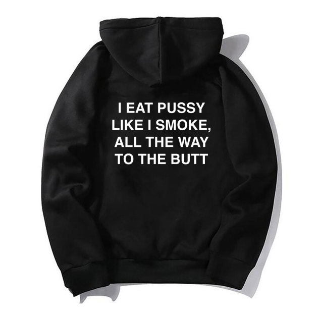 I EAT PUSSY LIKE I SMOKE Letter Black Print Hoodie