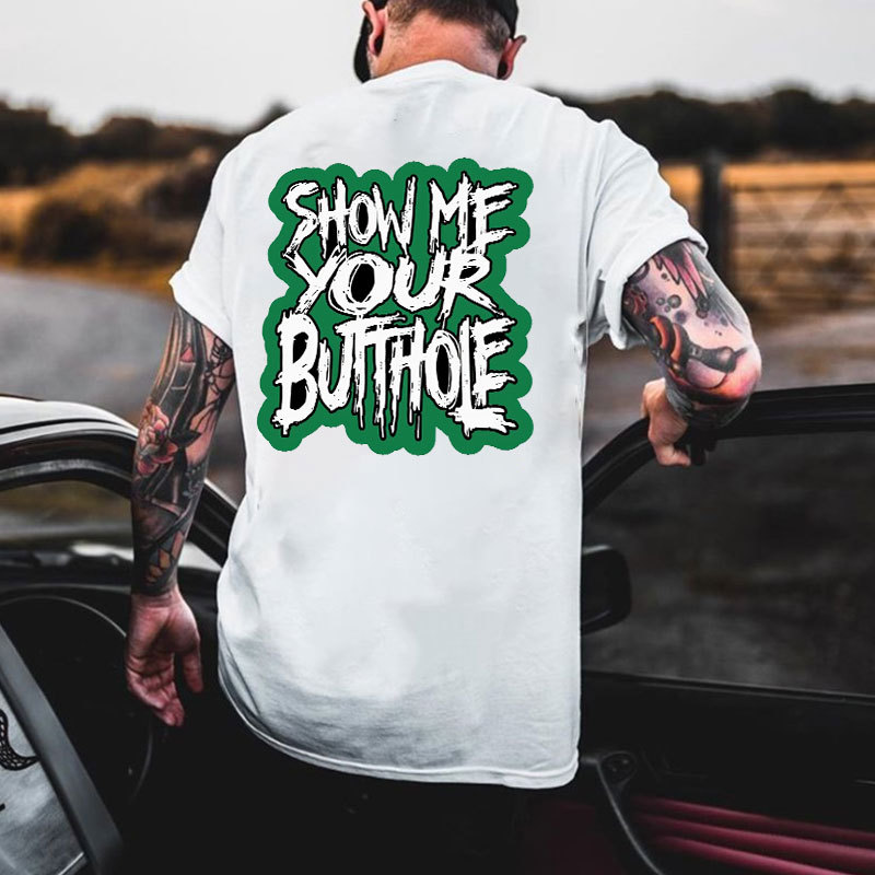 SHOW ME YOUR BUTTHOLE White Print T-Shirt