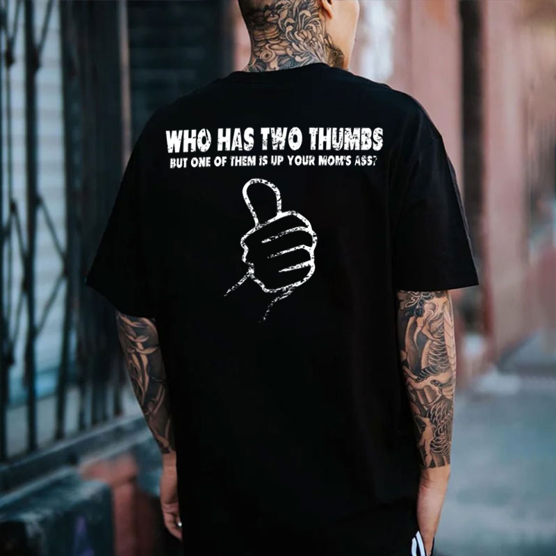 WHO HAS TWO THUMBS BUT ONE OF THEM IS UP YOUR MOM'S ASS Thumb Up Print Men's T-Shirt