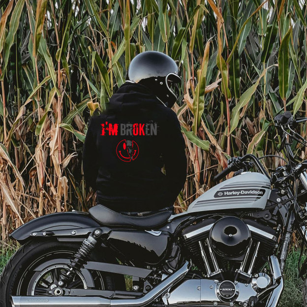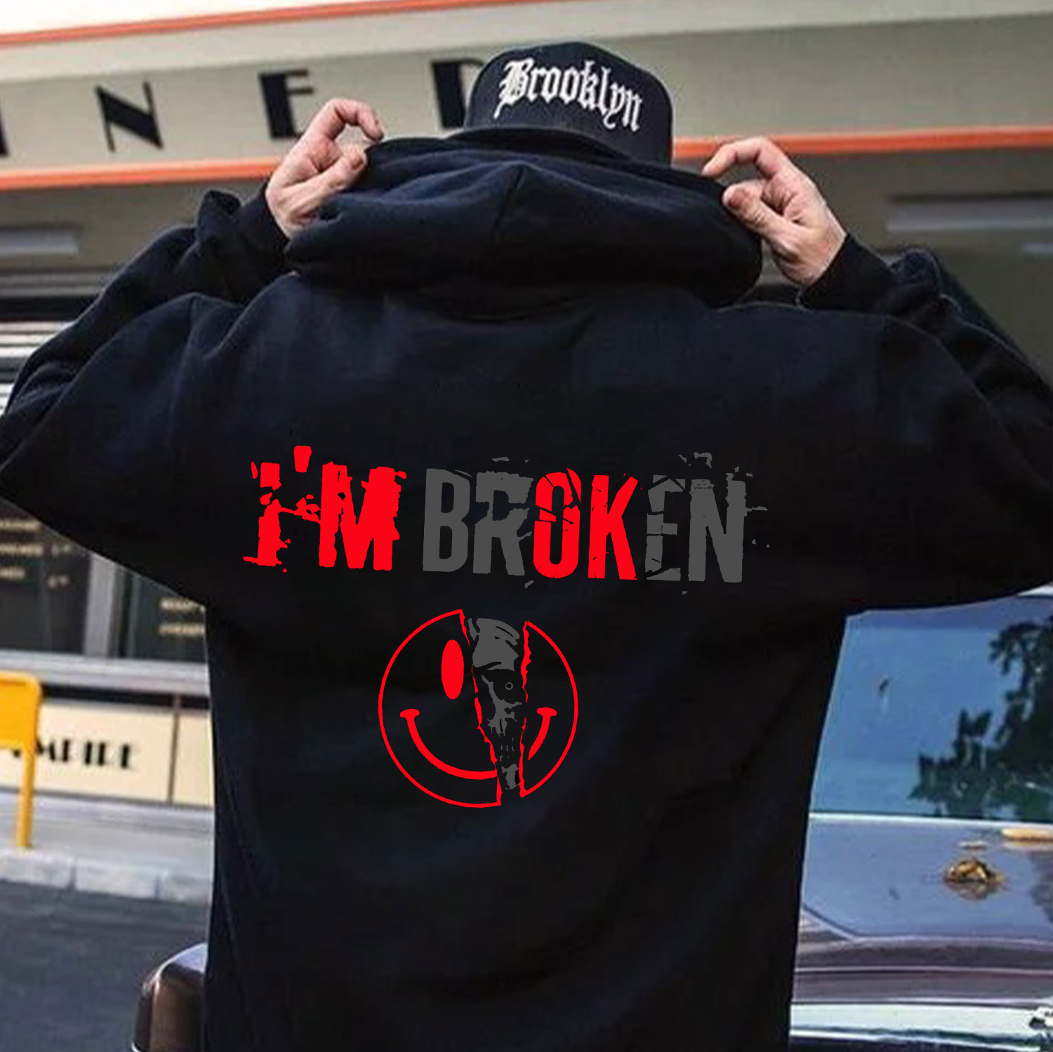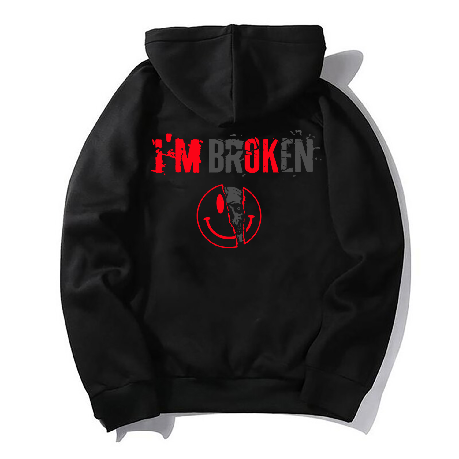 I’M BROKEN Smiling Face Graphic Casual Black Print Hoodie