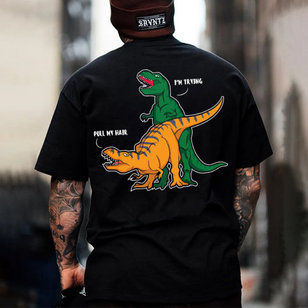 PULL MY HAIR I'M TRYING Dirty Dinosaur Print Men's T-shirt