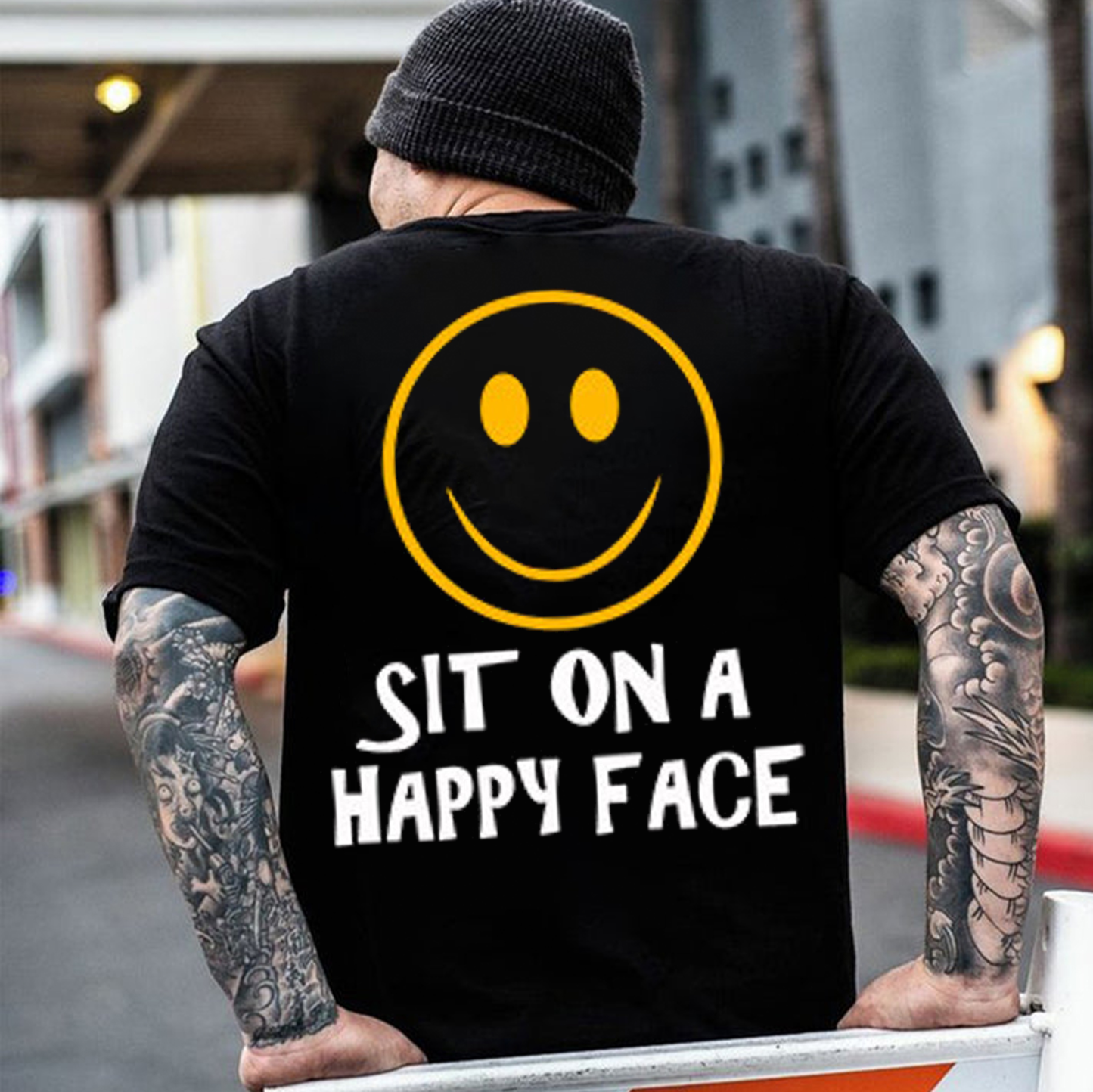 SIT ON A HAPPY FACE Smile Emoji Print Men's T-shirt